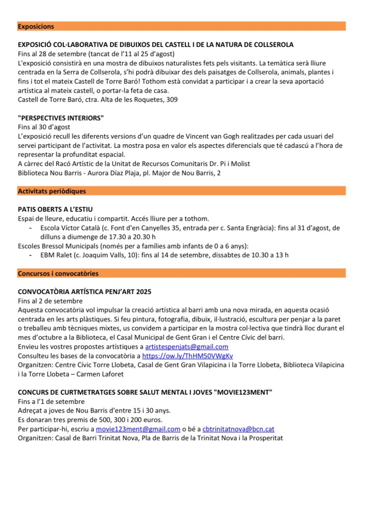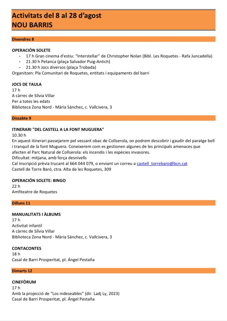 Agenda Nou Barris (8–28 d’agost)